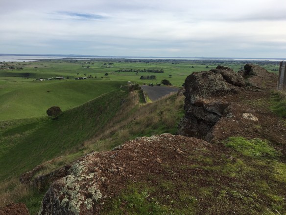 This post is actually a test of posting from my iPhone (although I finished it off on the laptop). After cold, wet & windy weather the riding itch really needed a scratch. However, neither Marty nor I had a full day available so we took a short 200km run to an extinct volcano called Red Rock near Colac, Vic. It was chilly, but sunny and calm. Our first stop was at the Inverleigh bakery for a warm drink and then we hit the deserted backroads to the lookouts at Red Rock, near Alvie.